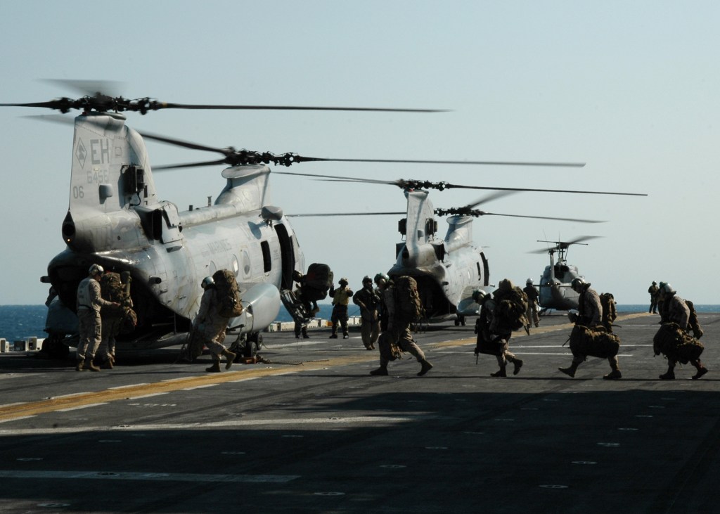 The helicopter descended in a slow, lazy circle. The change in our speed or pitch of the engine roused the others, and sitting across from me, Jim mouthed something to me, pointing out the round window. From the side I was sitting I had not realized another Sea Knight flying alongside. Jim’s hands zoomed around dogfighting, reenacting the “Ride of the Valkyries” attack scene from Apocalypse Now. In my mind’s eye, the helicopters would swoop in for a graceful landing on the flight deck. But it was all in slow motion — crawling to the big ship, then hovering, for what seemed like forever…waiting.